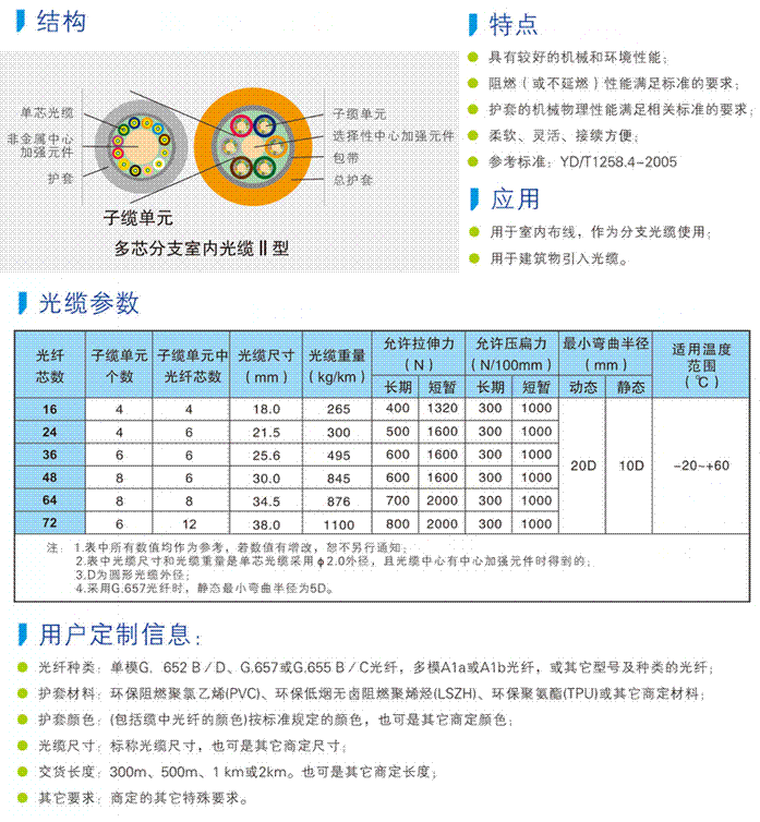 多芯分支室内光缆Ⅲ型列表单芯圆形室内光缆