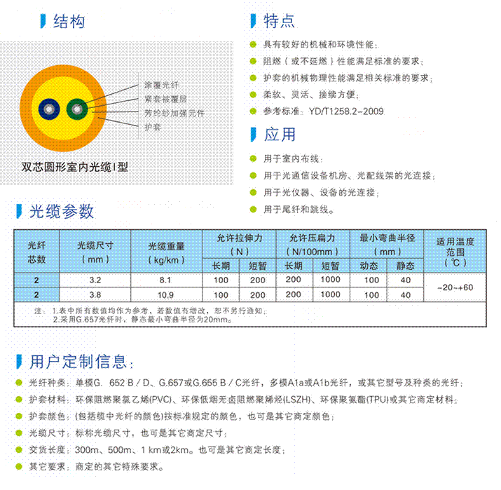 双芯圆形室内光缆Ⅲ型